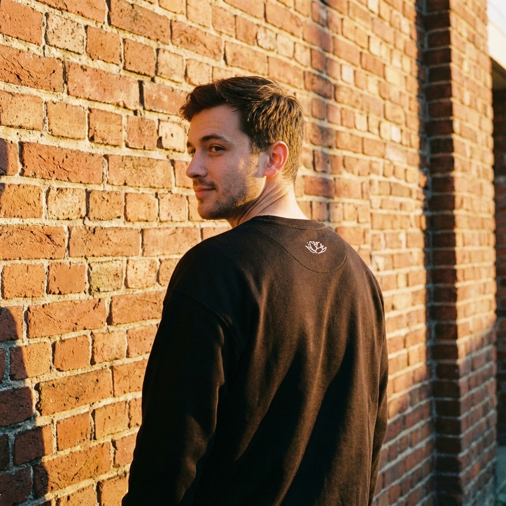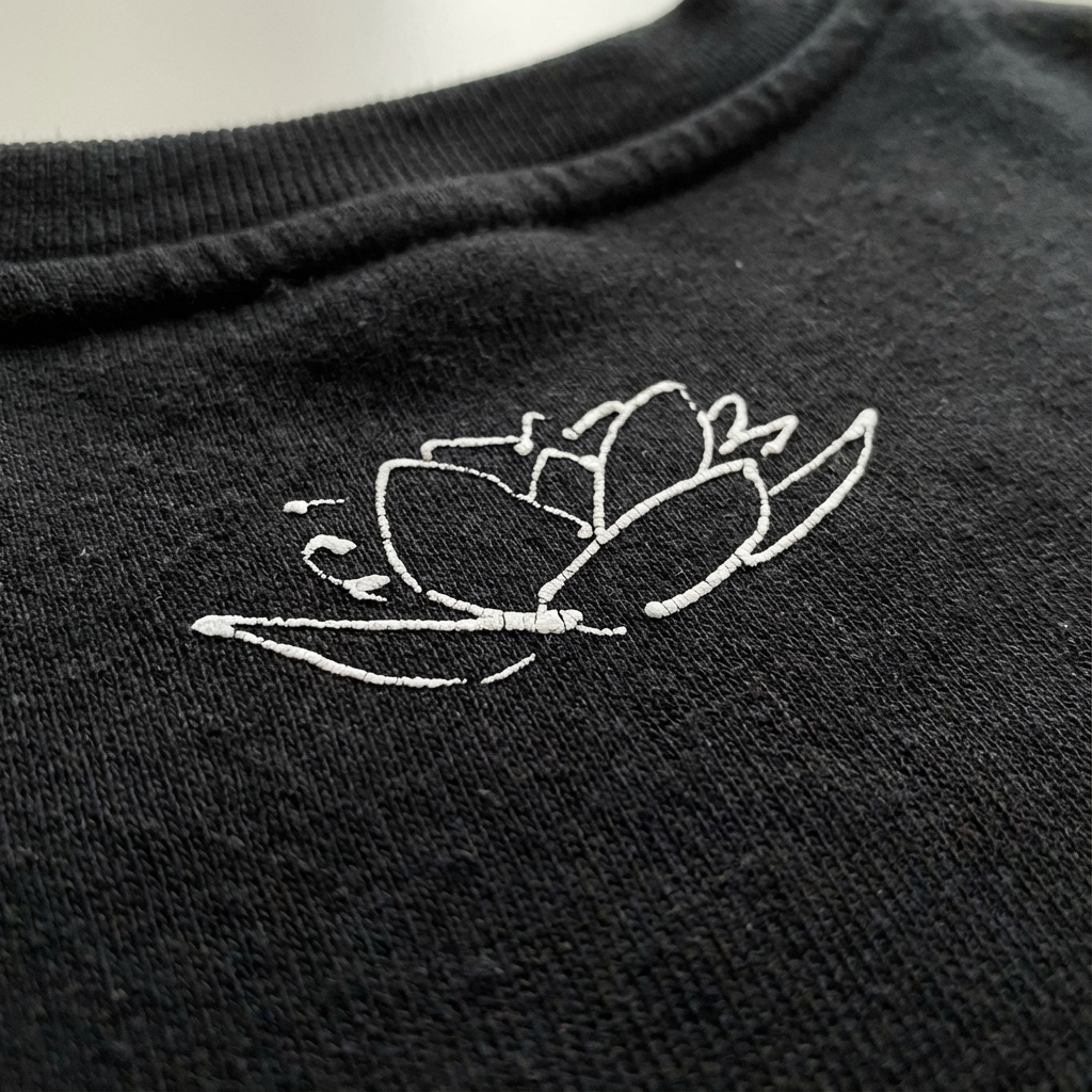 Minimalist design meets street style. This black sweatshirt features a white lotus line art on the back neck, perfect for a subtle statement.